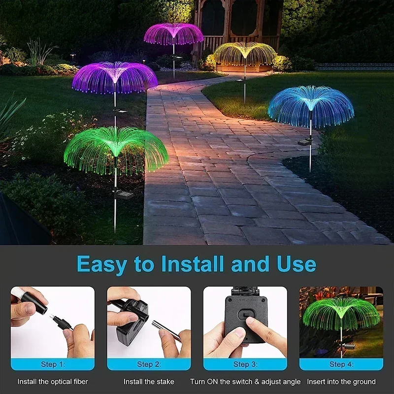 The solar yard lights with double-layer design, which looks more attractive than the ordinary single-jellyfish light. The unique shape design makes your garden beautiful and distinctive. The outdoor solar Christmas decorations landscape lights are ideal for garden, yard, pathway flowerbed, driveway, lawn, path, walkway, patio, backyard.